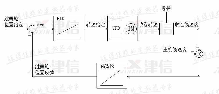 可見收卷線速度同步控制的控制要求,可以轉化為跳舞輪位置控制的要求。