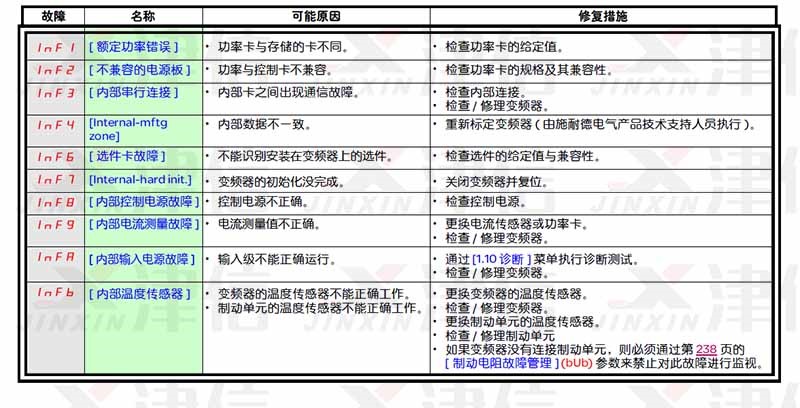 3、InF1,Inf2, InF3,Inf4, InF9,Inf6, InF7,Inf8,InFA,Infb故障