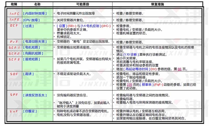 4、InFC,InFE,DCF,PrF,SCF1,SCF2,SCF3,SOF,SPF,tnF故障