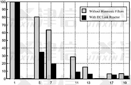 最后我們通過實際測量計算得到的真實數據,來說明雙直流電抗器對高次諧波的明顯抑制作用。